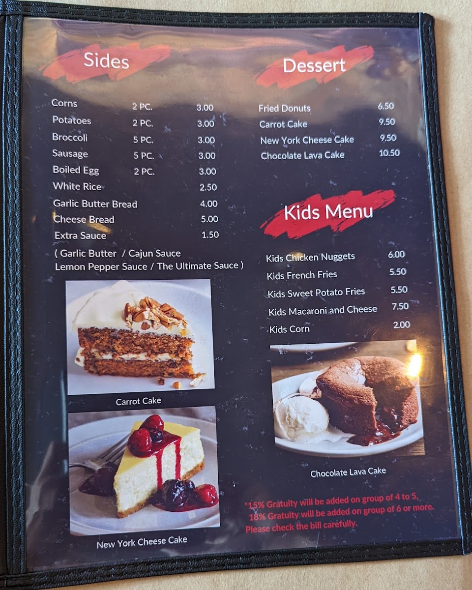 The menu features enticing options like the #4 combo, renowned for its ultimate sauce that elevates every bite. Guests rave about the juicy seafood, with standout items such as cream cheese and crab rolls, and a unique shrimp Mac and cheese that pairs perfectly with their flavorful rice cakes.