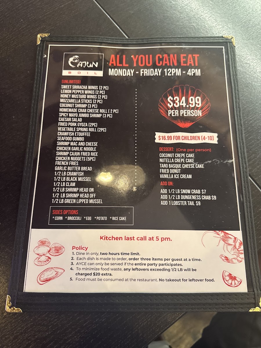 With each visit, customers note the attentive service and the thoughtful touches, like complimentary bibs and hair ties for a mess-free feast. Whether dining in or taking out, the vibrant atmosphere and delectable offerings at Cajun Boil make it a must-visit hotspot for any seafood enthusiast.